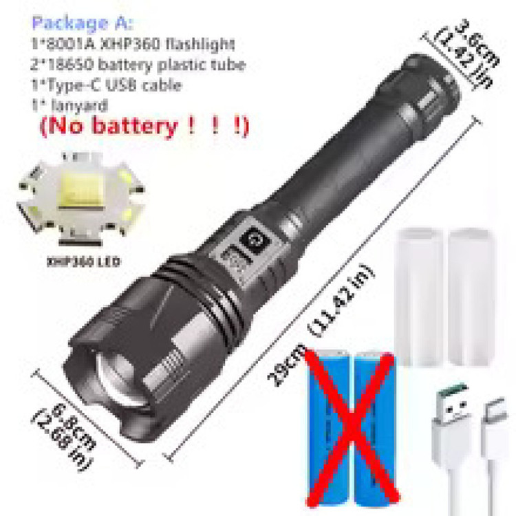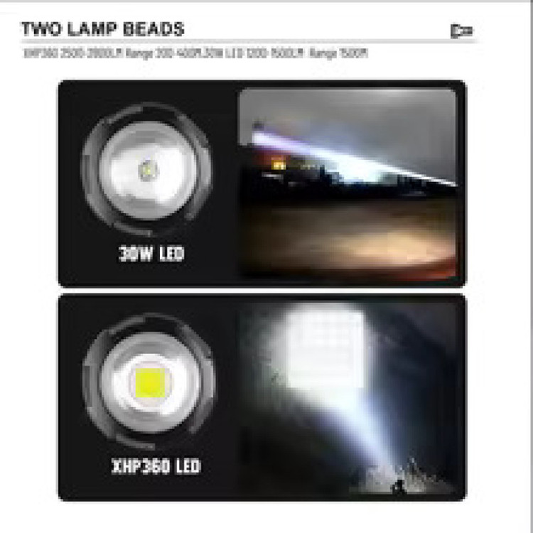 چراغ قوه ال ای دی ساخت چین یکی از چراغ قوه های درجه یک و جدید است که با داشتن XHP360 LED و استاندارد IPX4 مقاوم در برابر پاشش آب و حداکثر توان نوری 5000 لومن برای مدت زمان 3 ساعت (به صورت مسمتر)در نوع خود بینظیر است .دارای نوری فوق العاده قوی بوده و در محیطهای بارانی و مرطوب مناسب است. و 2 عدد باتری 26650 همراه کابل شارژ با قابلیت استفاده به عنوان پاور بانک برای شارژ گوشی همراه و پوشش ضد زنگ و ضد خوردگی (ضد ضربه) می باشد.
