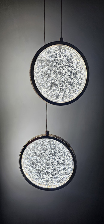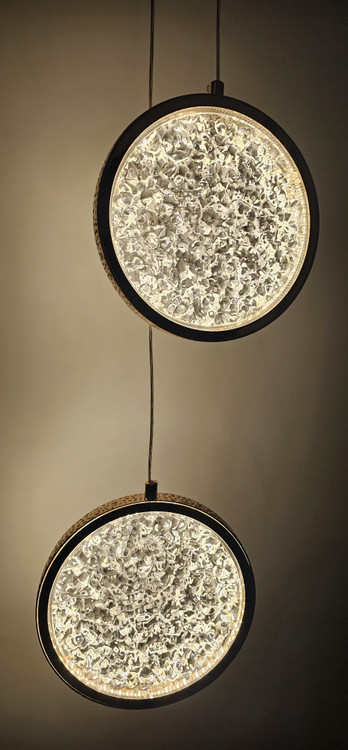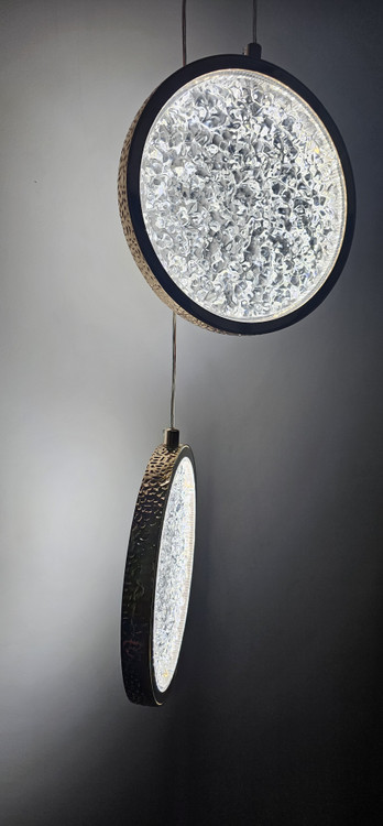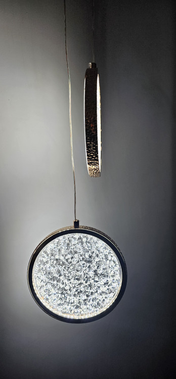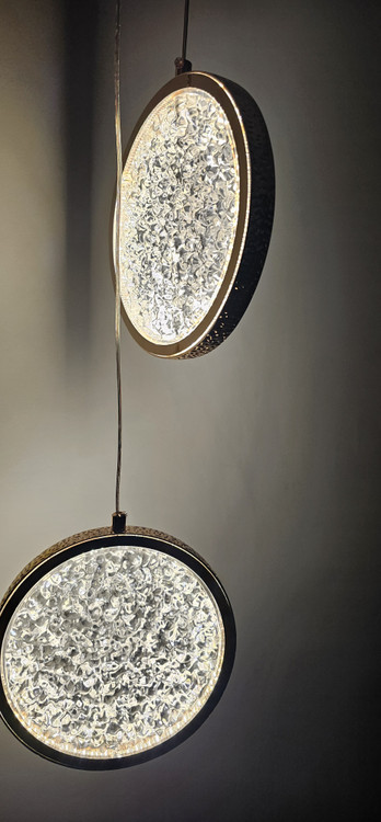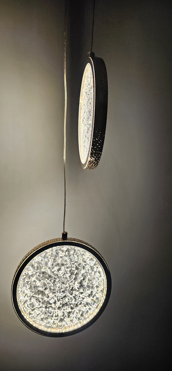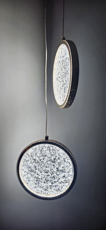 چراغ کریستالی مدل آویزی دوتایی با بدنه طلایی و توان 2*6 وات و یک سیم قابل تنظیم جهت روشنایی و زیبایی منزل شما بسیار مناسب هست. از این چراغ میتوان برای کنار تخت خواب یا کنج منزل خود استفاده کنید که علاوه بر روشنایی زیبایی منحصر به فردی هم به منزل شما میده. یک طراحی با نقش حبابی انجام شده است. نور این چراغ با هر بار روشن و خاموش کردن چراغ تغییر میکند. روشنایی این چراغ درسه طیف سفید آفتابی و سفید مهتابی و نچرال می باشد.