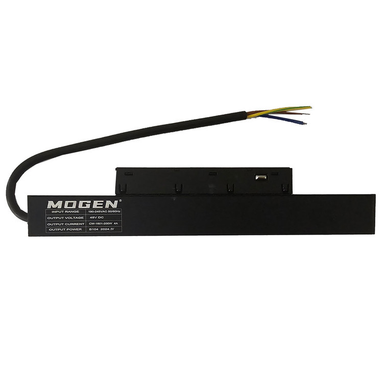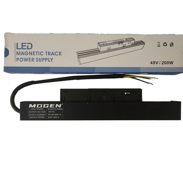 منبع تغذیه 200 وات چراغ مگنتی از سری تجهیزات جانبی بسیار مهمی است که با چراغ های خطی، ریلی و نقطه ای مگنتی عرضه می شود و با ادغام در ریل های توکار یا روکار و کنار کانکتورهای برق، این قابلیت را برای کاربر ایجاد می کند که پس از نصب ریل بتواند چراغ هایی را اضافه کند و از روشنایی بیشتری بهره مند شود. منبع تغذیه 48 ولت DC به عنوان یک اتصال مغناطیسی در داخل ریل قرار می گیرد. توان مصرفی منبع تغذیه 200 وات است و در صورت وجود بیش از 200 وات در ریل باید منبع تغذیه جداگانه اضافه شود.