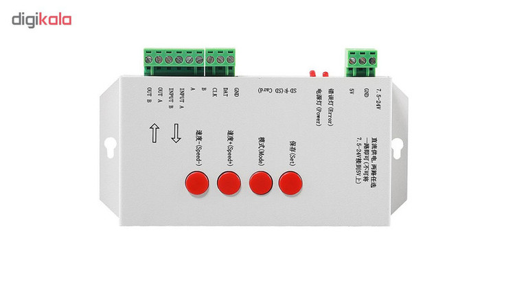 دستگاه DMX کنترلر برای کنترل نور چراغهای LED است. DMX یک سیستم نورپردازی است که در آن هر چراغ LED، یک آدرس منحصر به فرد در شبکه دارد. اصطلاحِ انیمیشن در سیستم های نورپردازی برای پروژه هایی است که از کنترلر DMX فرمان می گیرند و امکان نمایش افکت ها و ریتم های نوری با رنگهای متغیر را فراهم می کنند. DMX مختصر شده ی عبارت Digital Multiplex است که نام یک پروتکل شبکه ی ارتباطی برای ارسال داده ها می باشد و در شبکه ی دیتای نورپردازی، رنگ و شدت نور هر پروژکتور را تعیین می کند. مدل T1000S مناسب جهت چراغ های ال ای دی RGB که دارای IC هستند است و دارای یک عدد کارت حافظه 256 می باشد.