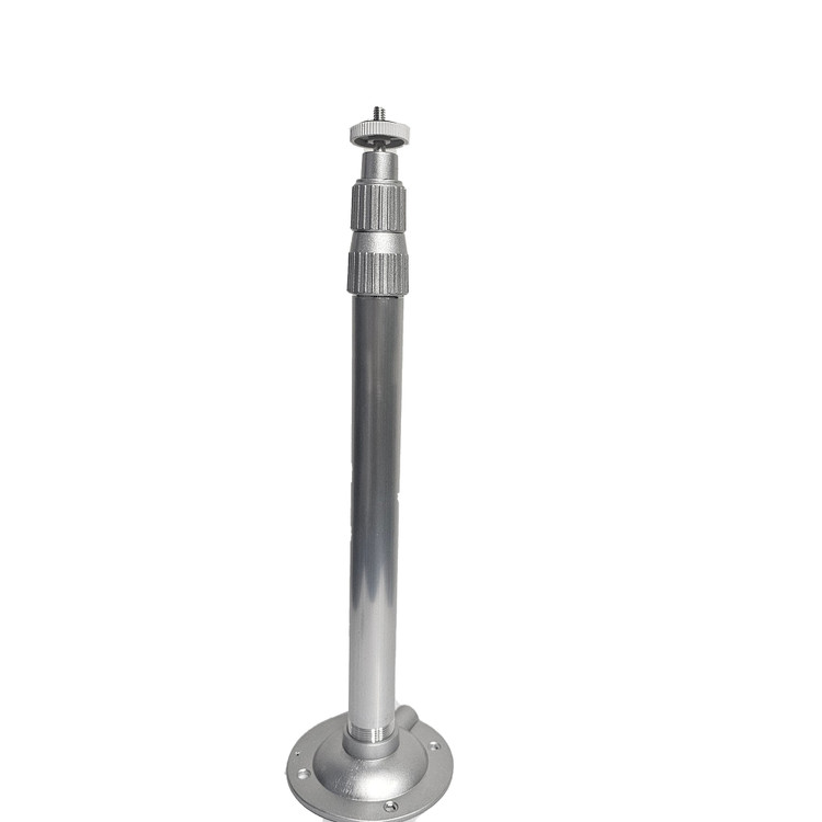 در اکثر موارد ویدئو پروژکتورها را به سقف نصب می کنند. برای این منظور از پایه های سقفی استفاده می شود که نسبت به ابعاد و ارتفاع سقف، سایزهای مختلف پایه کاربرد دارد. این پایهها دارای دو پروفیل هستند که بهصورت کشویی درون هم میلغزند و امکان تنظیم دقیق ارتفاع را بین دو حالت حداکثر و حداقل فراهم میکنند. این پایه قابلیت نصب ویدئو پروژکتور را از سقف یا روی دیوار برای شما فراهم می کند. ارتفاع این پایه از سقف در کوتاه ترین حالت 30 سانتی متر و در بلندترین حالت 60 سانتی متر است. این پایه تا وزن 4 کیلوگرم را می تواند تحمل نماید و برخلاف پایه های ثابت که امکان چرخش دستگاه را ندارند، شما را قادر می سازد تا دستگاه را در هر موقعیتی که میخواهید قرار دهید و امکان چرخش آن را داشته باشید و قابلیت چرخش دستگاه تا 360 درجه و حرکت 90 درجه را فراهم می کند.
