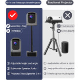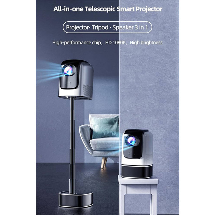 ویدئو پروژکتور مدلTS1یک پروژکتور کوچک و قابل حمل که با روشنایی 600 Amsi میتوانید آن را به راحتی به هر جایی ببرید. این پروژکتور قابلیت پخش نمایش تصویر با کیفیت 4K و قابلیت تنظیم فوکس با دستگاه کنترل را دارد. همچنین این دستگاه قابلیت اتصال به گوشیهای هوشمند اندروید و آیفون را دارد و میتواند محتوا را از این دستگاهها نمایش دهد. ومی توان برنامه های انرویدی را بر روی دستکاه نصب کرد . این مدل قابلیت اتصال بیسیم به دستگاههای مختلف را دارد که به کاربران این امکان را میدهد تا بدون نیاز به کابل، تصویر را از گوشی یا تبلت خود به پروژکتور TS1ارسال کنند. پروژکتور TS1 خود دارای پایه است و قابلیت بلند کردن ارتفاع را دارد و همچنین قابلیت تنظیم زاویه نمایش تا 30 درجه نیز دارد. این نوع پروژکتورها دارای درگاههای HDMI،USB و سایر ورودیهای استاندارد برای اتصال به دستگاههای مختلف همچون هارد، کامپیوتر، لپ تاپ و تلویزیون هستند که این قابلیت این پروژکتور را برای استفاده در خانه و ارائههای تجاری یا تماشای فیلم در سفر مناسب کرده است. پس از اتصال پروژکتور به دستگاه مورد نظر می توانید تنظیمات اولیه مانند وضوح تصویر، نسبت تصویر و سایر تنظیمات را مطابق نیازهای خود تغییر دهید. ویدئو پروژکتور مدل TS1دارای بلندگوهای داخلی است که کیفیت صدای مناسبی را ارائه میدهد. این بلندگوها برای استفادههای روزمره کافی هستند.قابلیت تنظیم ارتفاع تا 72 سانتی متر است،اگر به کیفیت صدای بالاتری نیاز دارید، میتوانید از طریق بلوتوث یا کابل AUX دستگاه را به بلندگوهای خارجی متصل کنید.دارای یک دفترچه راهنما،برس تمیز کننده لنز،کابل برق و ریموت کنترل است.
